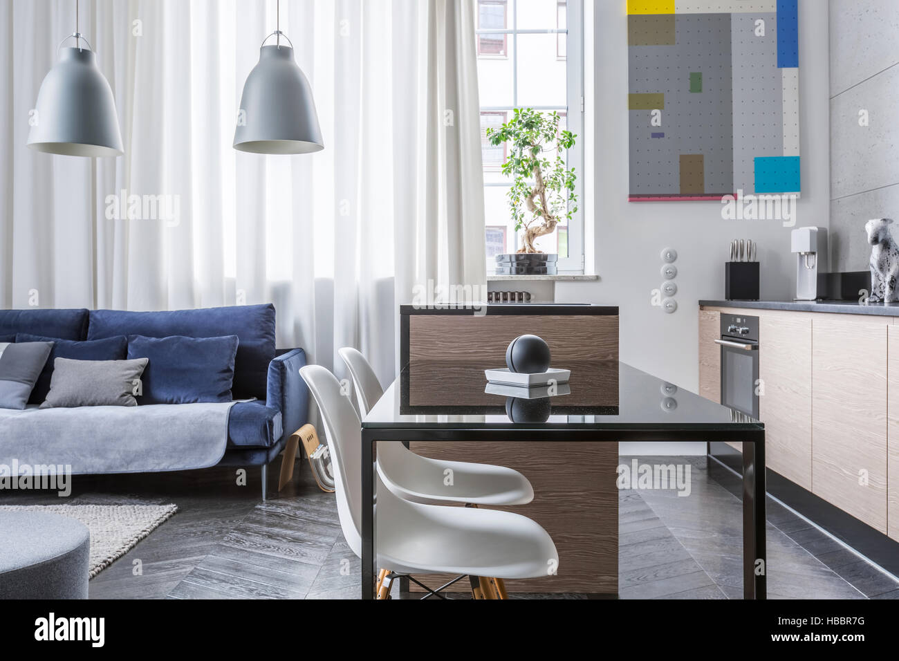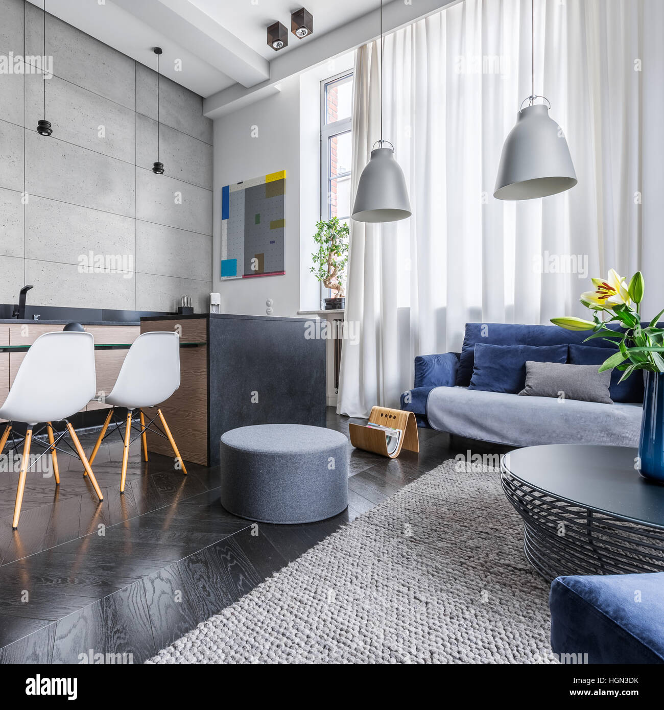 Modern Apartment With Kitchen And Living Room Combined Stock Photo