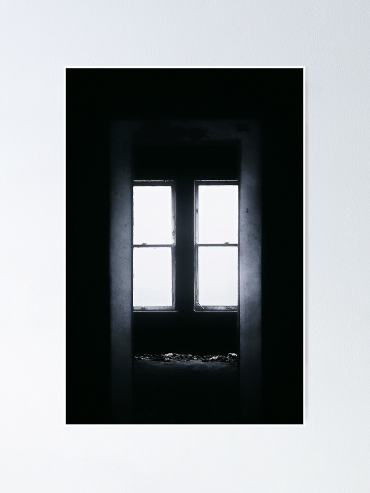 Green Branches Behind Small Rustic Window In Dark Room Scary