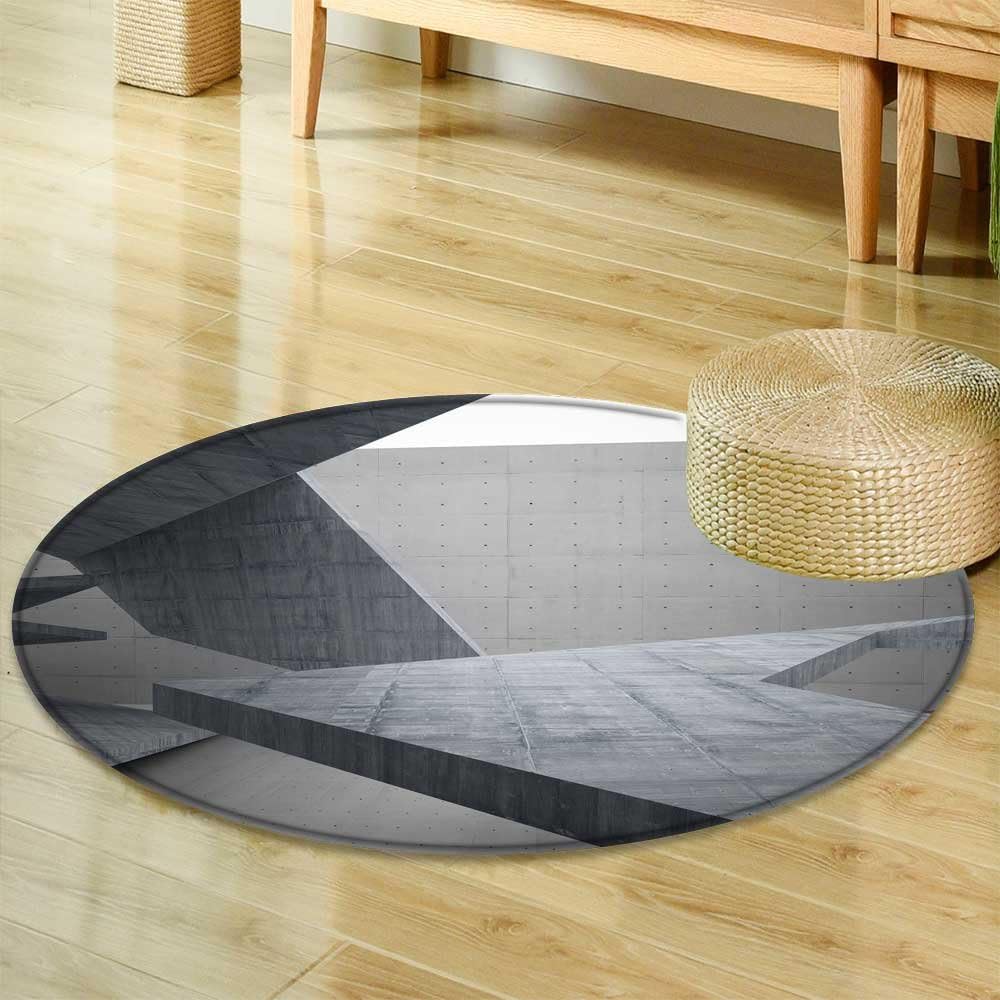 Small Round Rug Carpet Empty Dark Abstract Concrete Room Interior