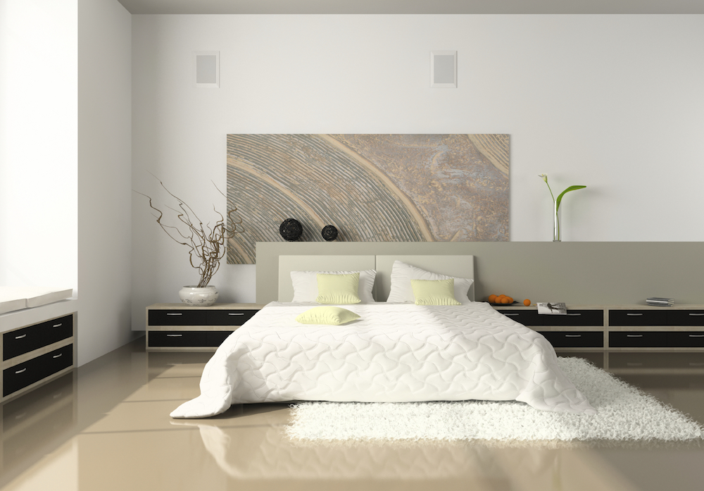 Small Master Bedroom Enlarged By Matching Mirrors And Large Rug