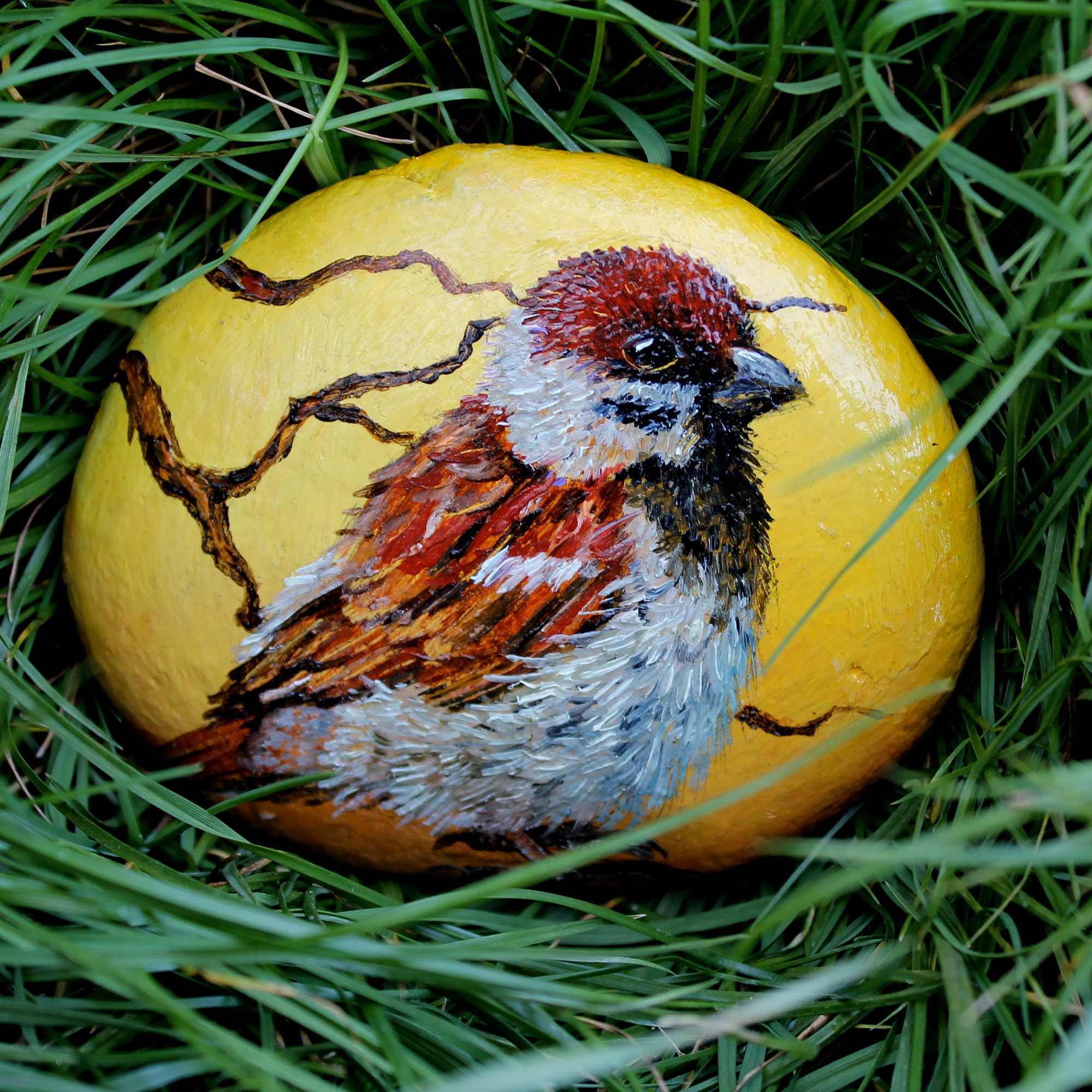 Painted Stone Sparrow Art Aesthetic Room Decor Painting Rock Etsy