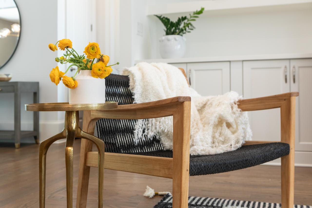 Stylish High Chair In A Small Room With A Side Table And A Show