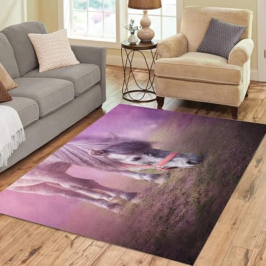 Amazon Com Semtomn Area Rug 2 X 3 Pink Cute Of Small Pony On Green Grass Purple Horse Romantic Home Decor Collection Floor Rugs Carpet For Living Room Bedroom Dining Room Kitchen