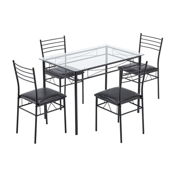 5 Pieces Dining Table Set Tempered Glass Dining Table And Chairs