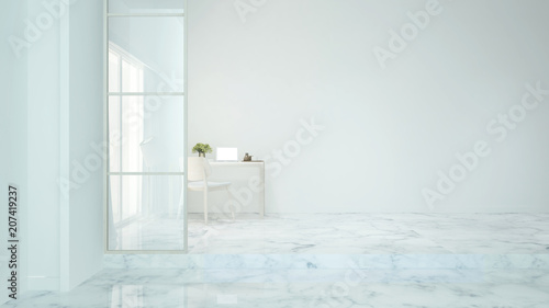 Workplace And Empty Space On Bright Tone In Condominium Or Small Office Study Room White Tone Artwork For Apartment Or Home Office 3d Rendering Buy This Stock