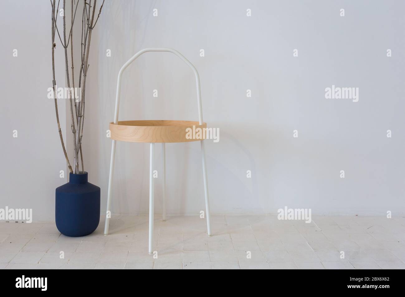 Blue Vase With Plants And A Small Designer Table In A White Room Empty Place Stock Photo Alamy
