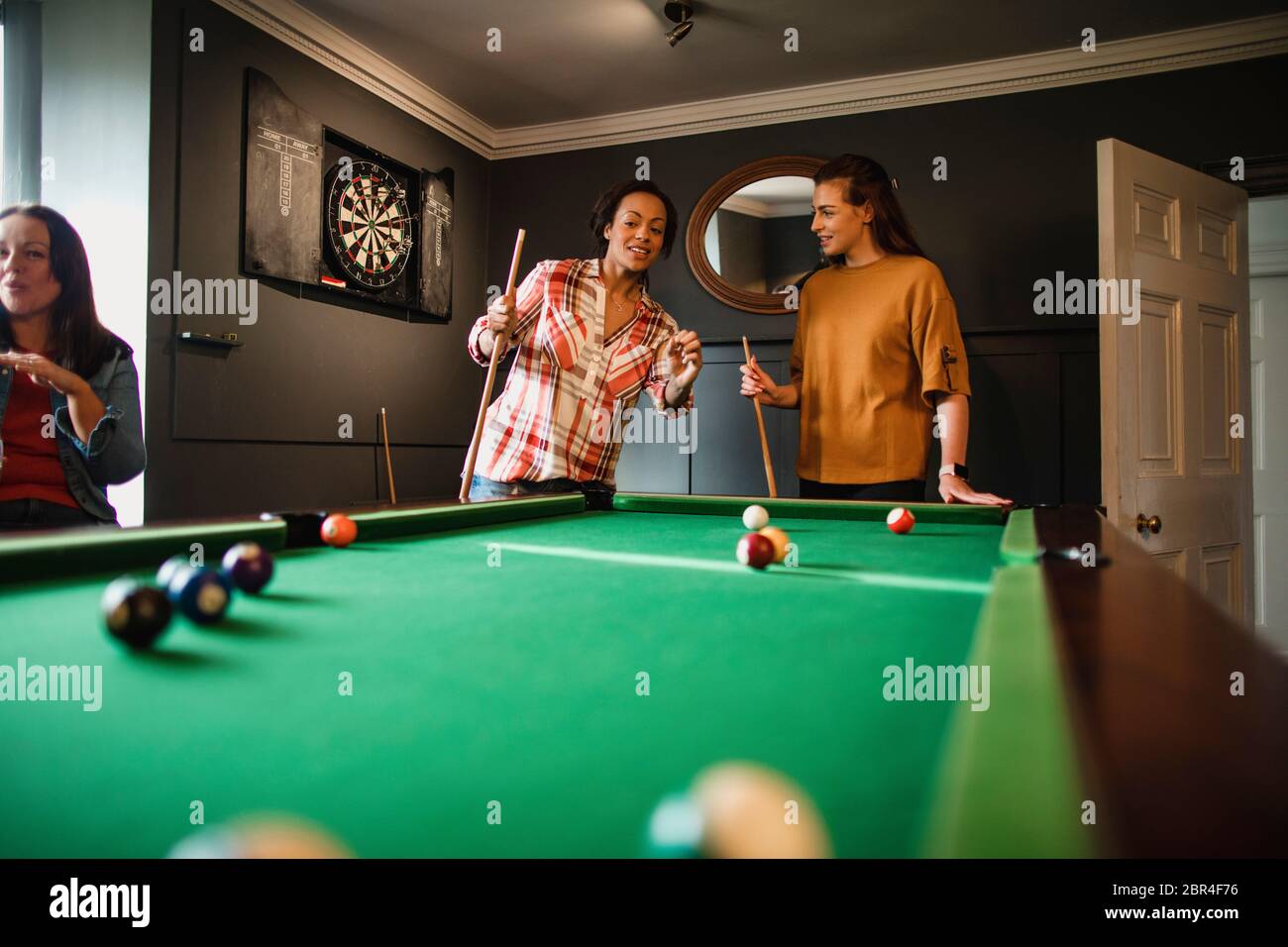 Small Group Of Female Friends Playing A Game Of Pool In A Games