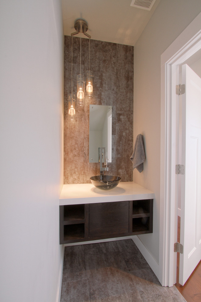 Modern Powder Bathroom With Floating Cabinet Vessel Sink Modern