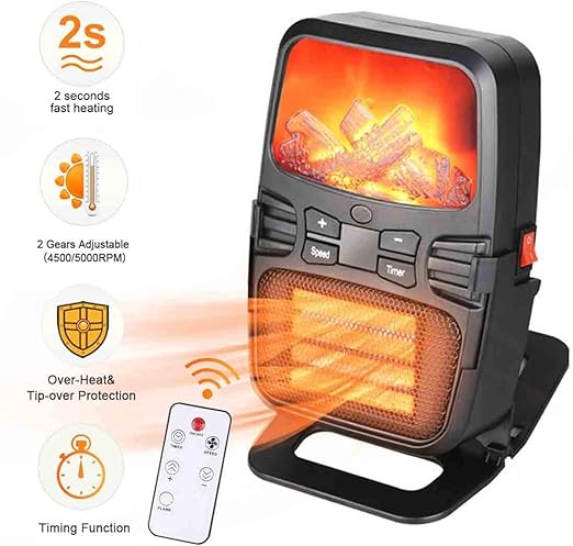 Amazon Com Mini Flame Heater 1000w Electric Small Space Heater With Thermostat 12h Timer Remote Control Overheat And Tip Over Protection Portable Space Heater Fan For Office Desk Home Indoor Use Kitchen