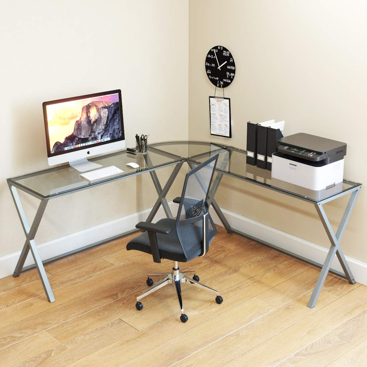 Ryan Rove Keeling X Glass Large Modern L Shaped Desk Corner