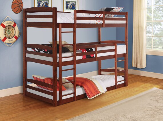 Natural Cherry Finish Triple Wood Bunk Beds Etsy