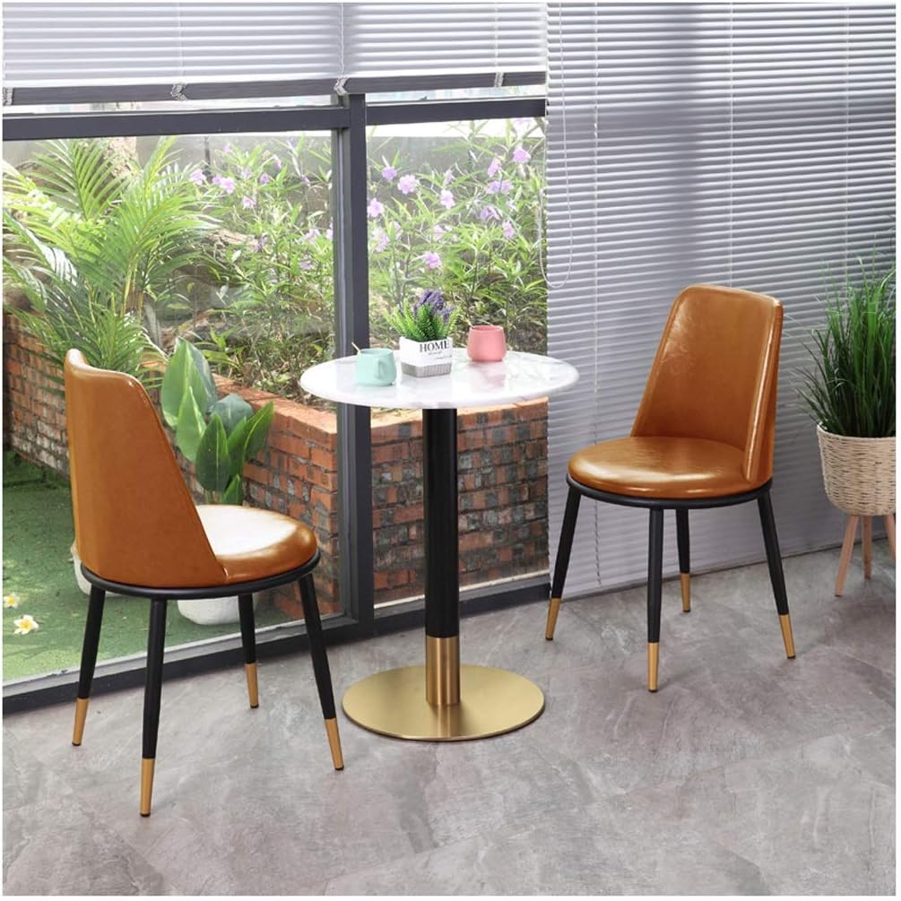 Amazon Com Round Table And Chairs Set 2 Modern Marble Tabletop Small Kitchen Space Dining Table Oil Wax Leather Chair Living Room Office Furniture Combination Break Room Leisure Lounge Area Multi Color