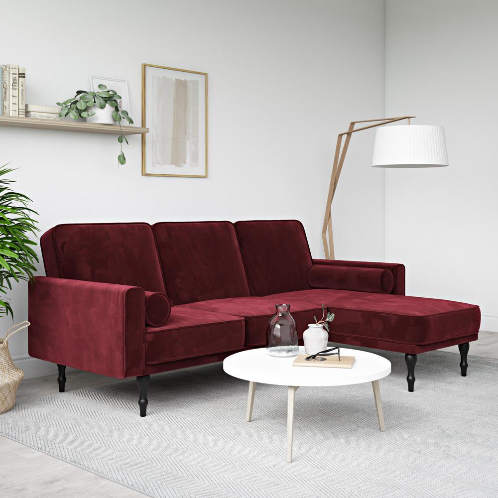 Dhp Elinda Burgundy Velvet Small Space Sectional Futon De65049