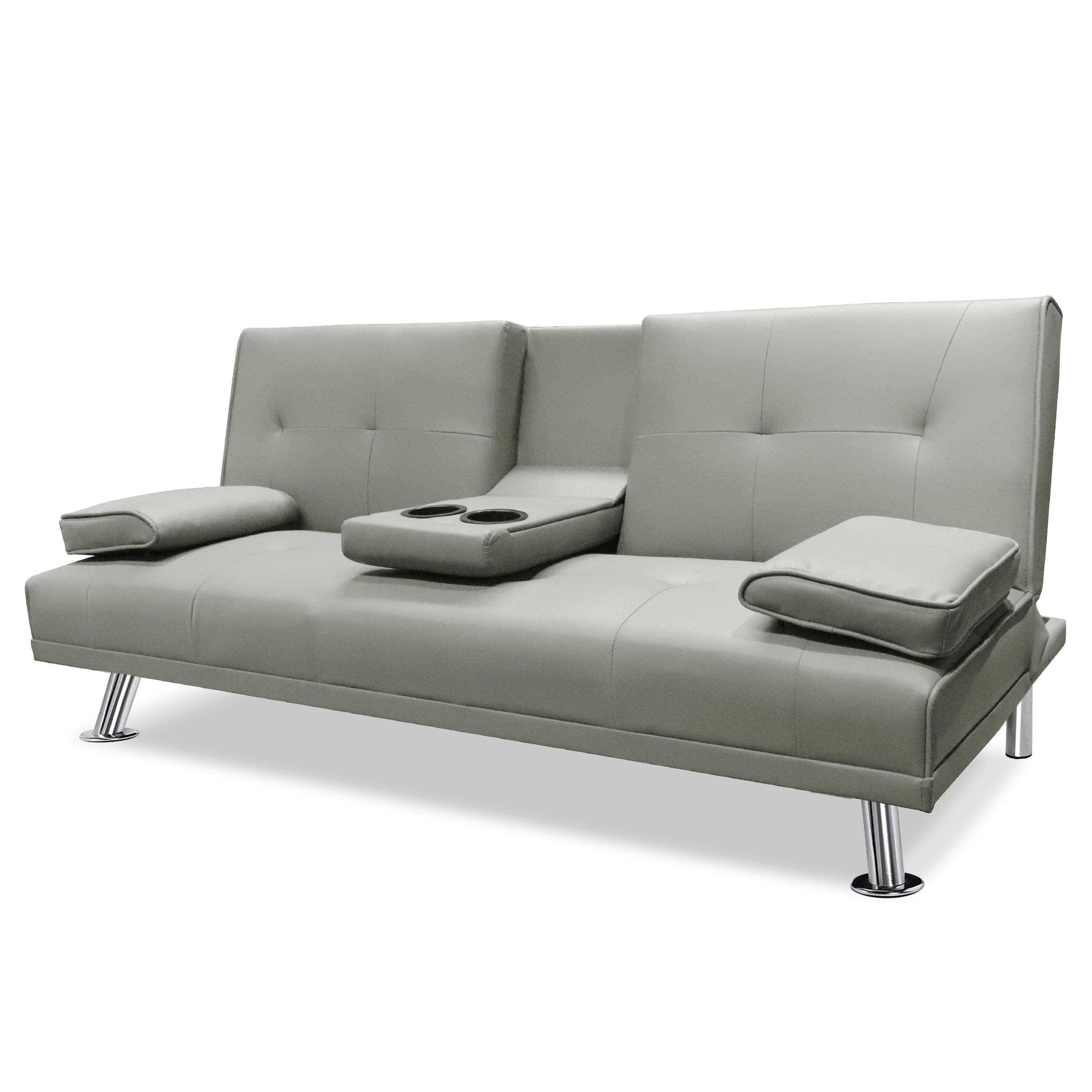 Futon Couch Bed Modern Pu Leather Sofa Sleeper Bed With Armrest