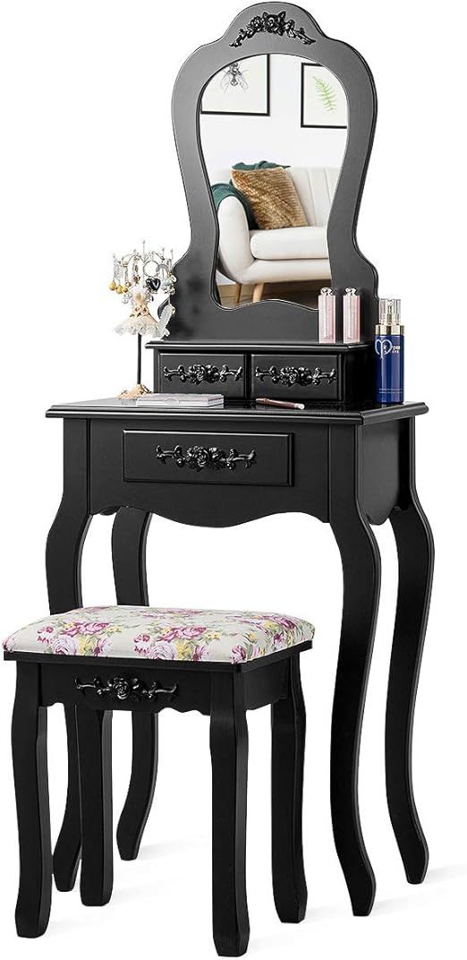 Amazon Com Giantex Vanity Set With 3 Drawers And Cushioned Stool
