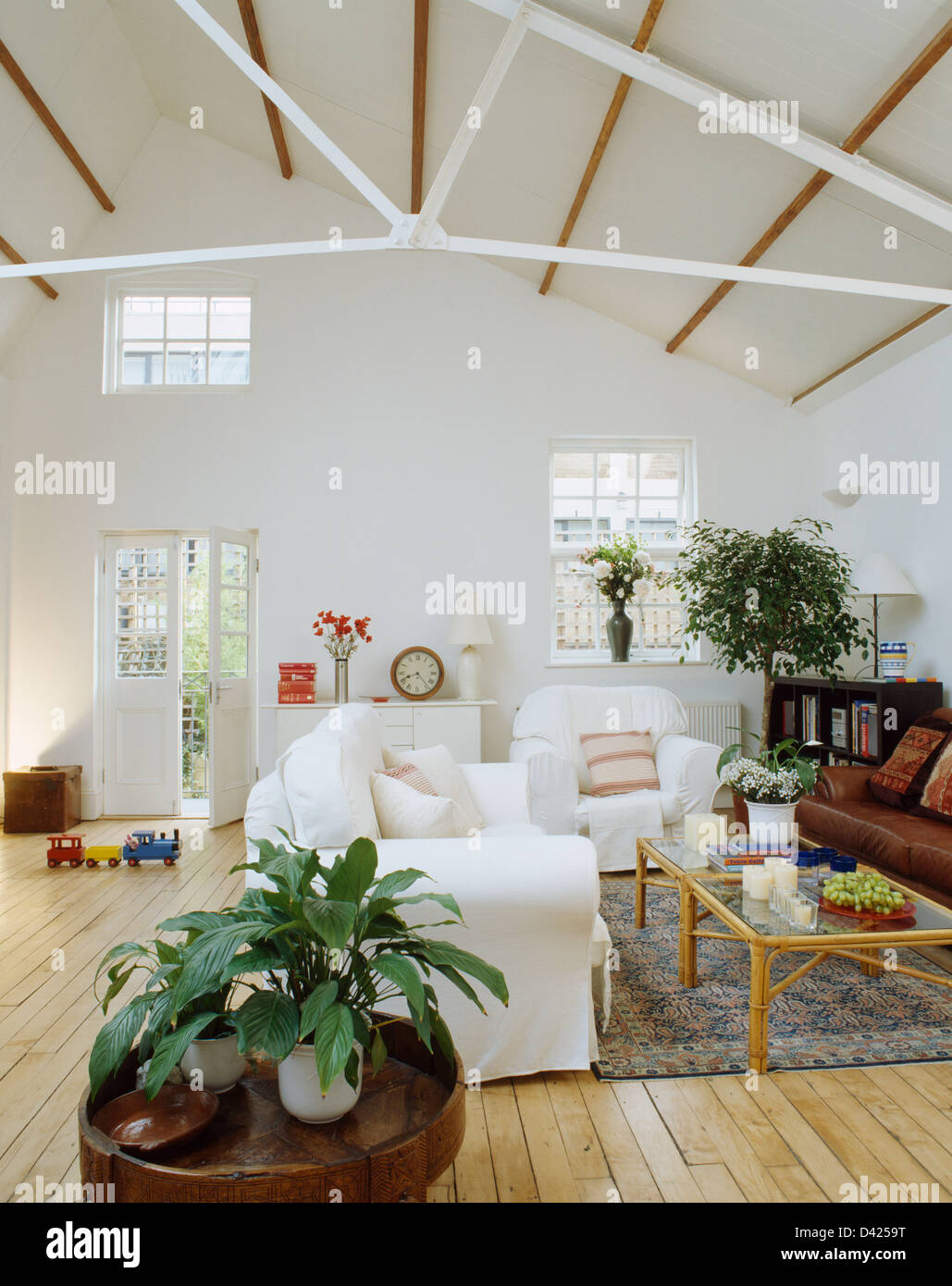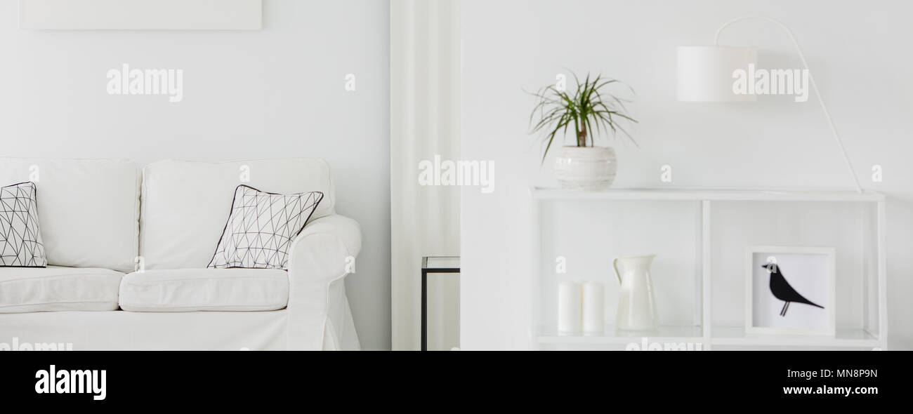 White Sofa Small Table And Plants In Cozy Living Room Stock Photo